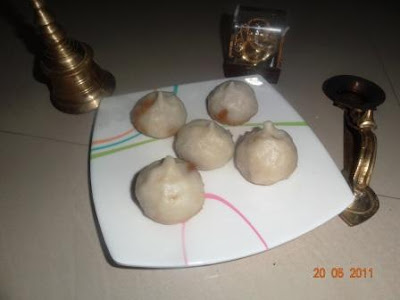 Vella Kozhukattai/Sweet Modaks/Steamed Rice Dumplings with Coconut-Jaggery Filling