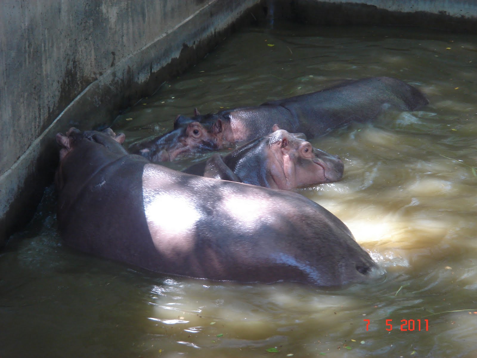 Slushing happily in the water, these hippos are having fun beating the sun !