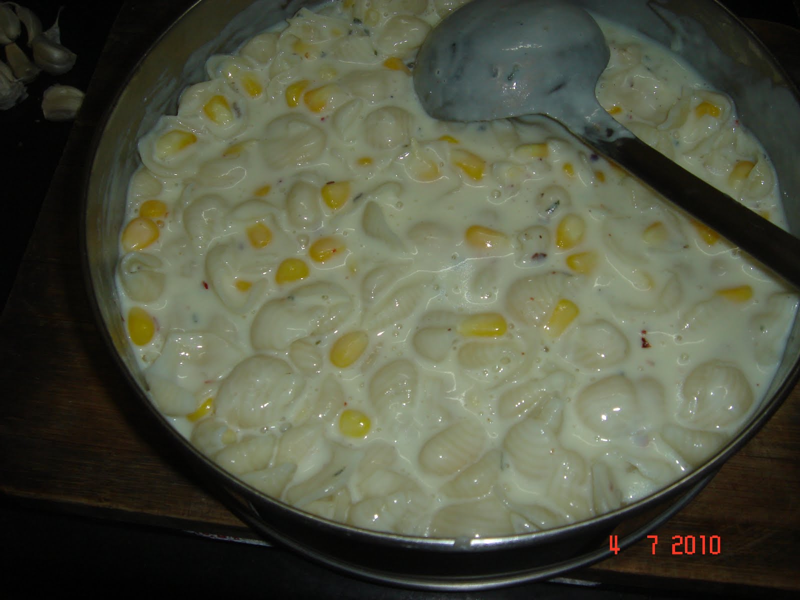 This he finally mixed in to the corn cum macroni and spruced it with a sprig of basil leaf