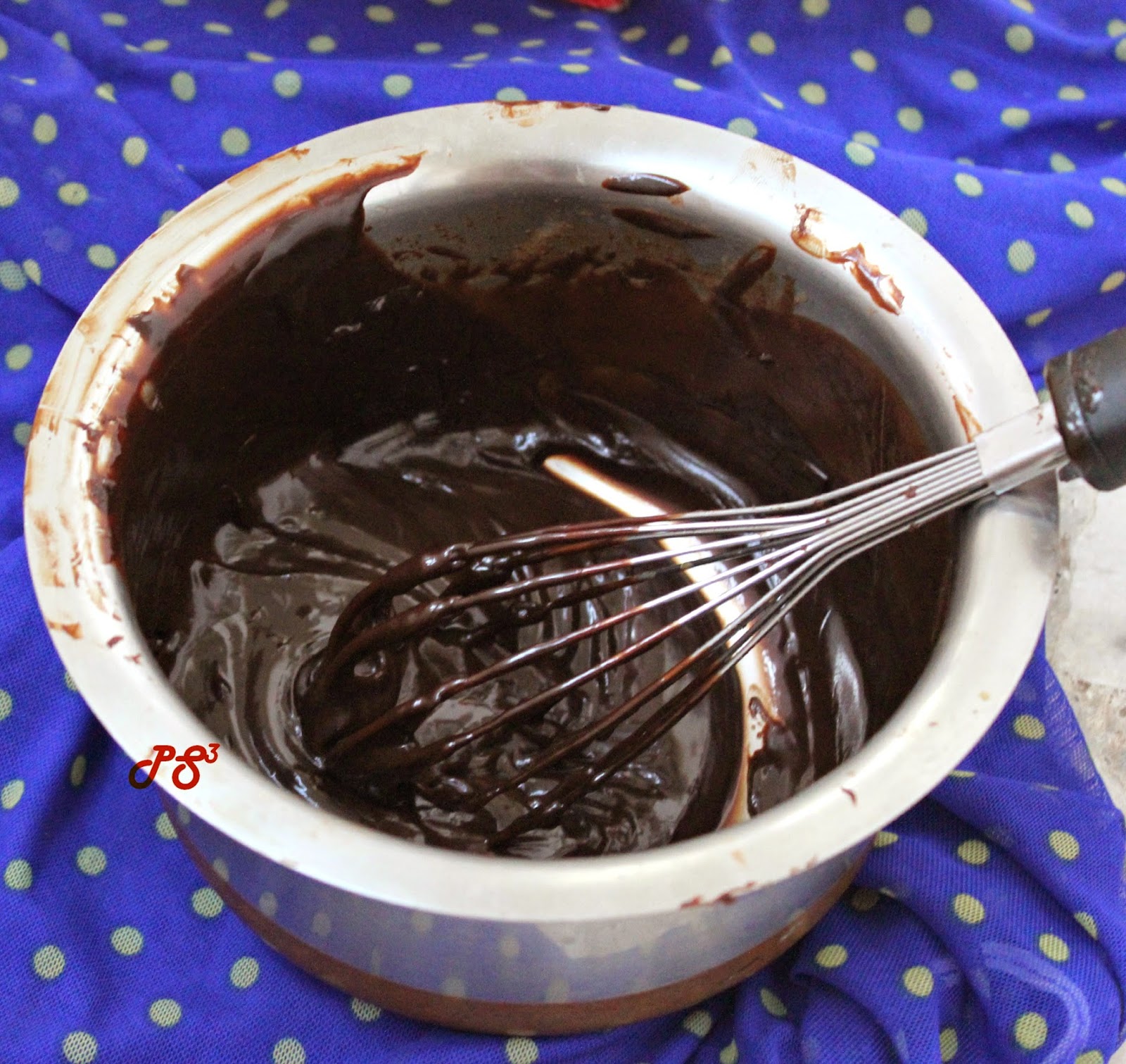 The bailey ganache to top the cake added to the pep. I used fresh cream for the ganche. The quantity of the liqueur in the ganache is as mentioned in the recipe but like the original recipe says you can make a boozier version of it sans cream or you can totally skip the whiskey and make it a chocolaty ganache!