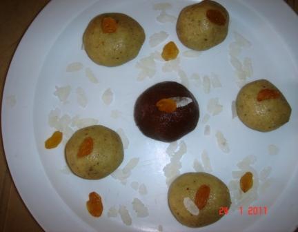 I am back with another recipe using Aval (Rice Flakes). The pack containing these flakies had a brief recipe on these laddus. Of course i cannot let a good recipe be– i gave a chocolate y twist to the recipe by mixing cocoa powder. Green Pistachios were further added to make it a delectable sweet ! They tasted really delightful and i couldn’t wait to post it !