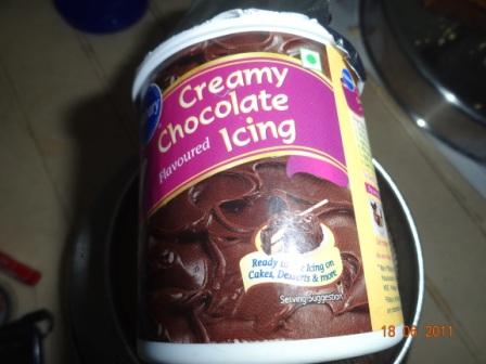 I made these very tempting & addictive eggless golden cake, recipe courtesy from Anushruti @ Divinetaste. Her recipe was merrily followed except that I dressed up the cake dandily, smearing it with creamy chocolate Icing. Hubby dearest had bought 2 tins of Pillsbury Ready-to-use Icing and they played to the hilt in making the cake look very grand as well as tasting heavenly !