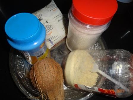 • Gram Flour ,Milk, Ghee,Grated Coconut, – 1 cup each