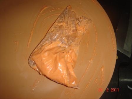 Take the small polythene bag (or zip lock cover) and make a small hole as shown. Alternatively a cone from the butter paper also served the purpose.