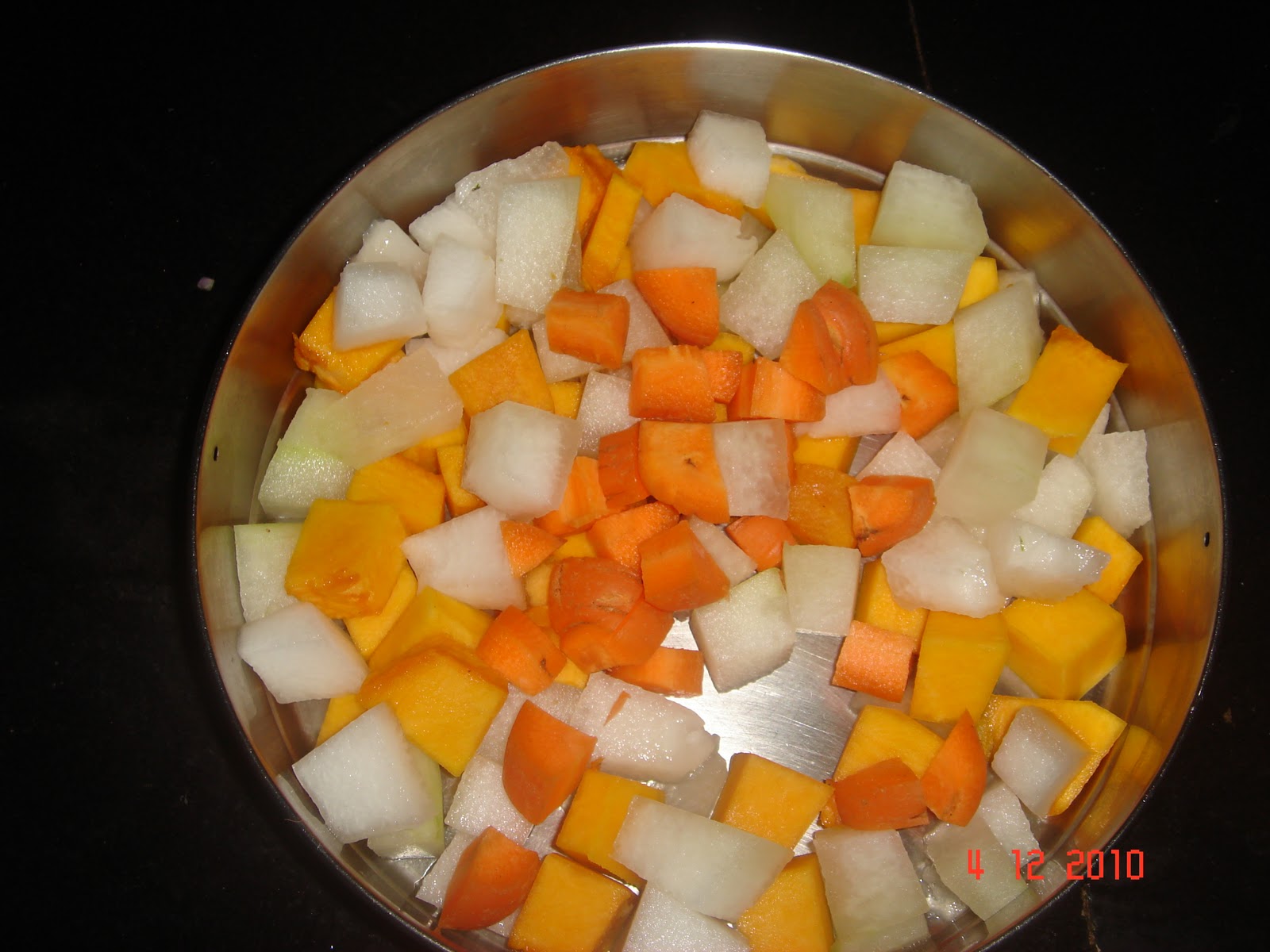 - White and Yellow Pumkin – 1 big cup (peeled n cubed)