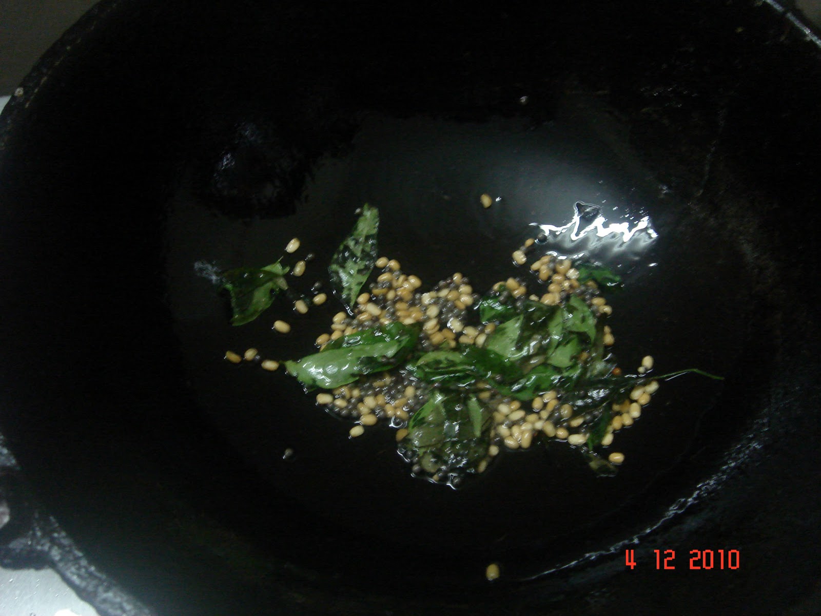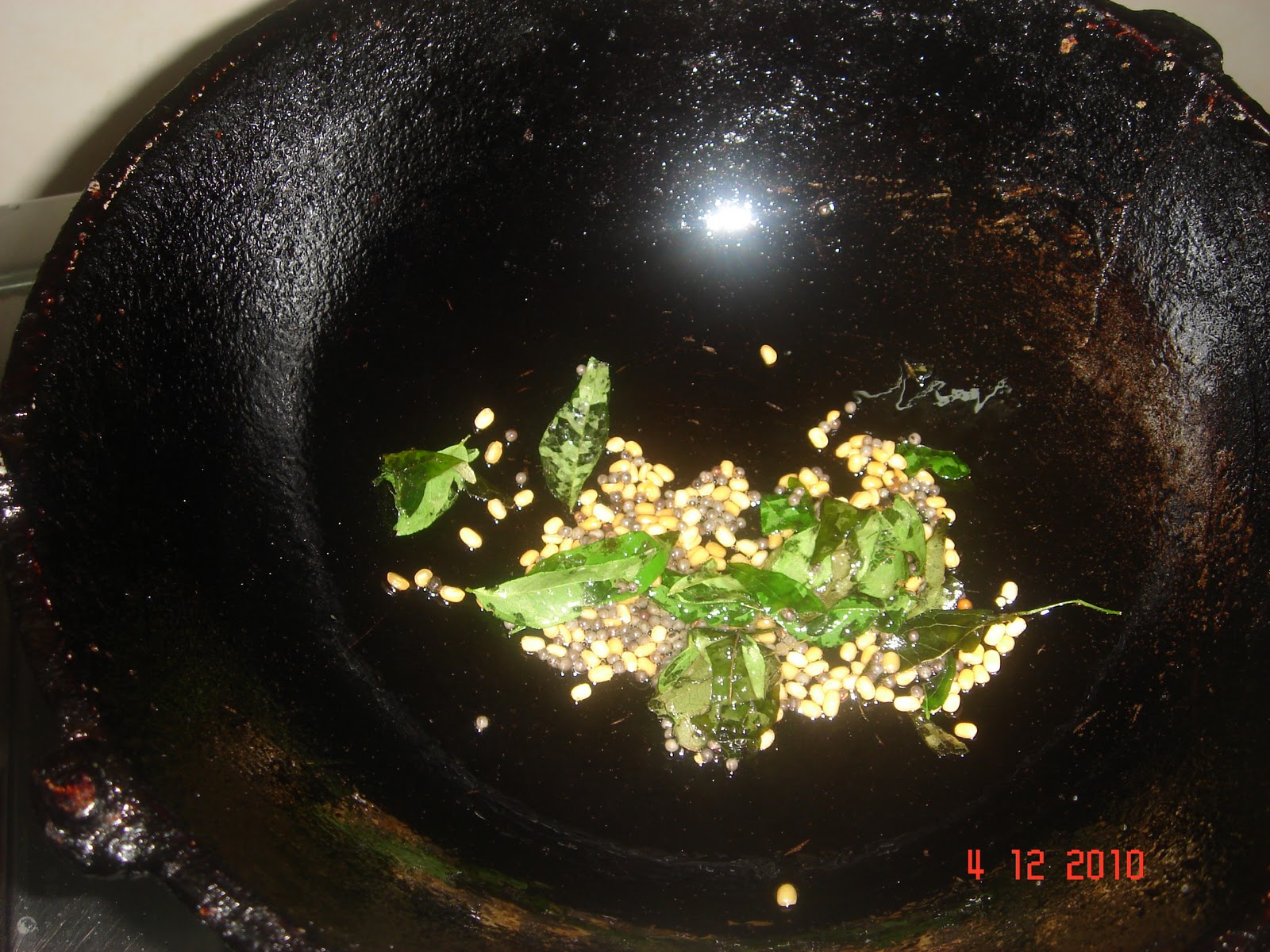 In the meanwhile prepare the seasoning in a separate pan. Add a little oil and as it becomes hot, add mustard seeds. Wait for it splutter and then add urad dal and curry leaves. Let it sizzle till it becomes golden brown .