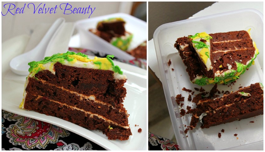 Now coming back to the cake , I baked this beauty last week. The cake was pounced upon leaving me with little pictures to work around. It is a red velvet cake topped off with a traditional vanilla cream cheese frosting.