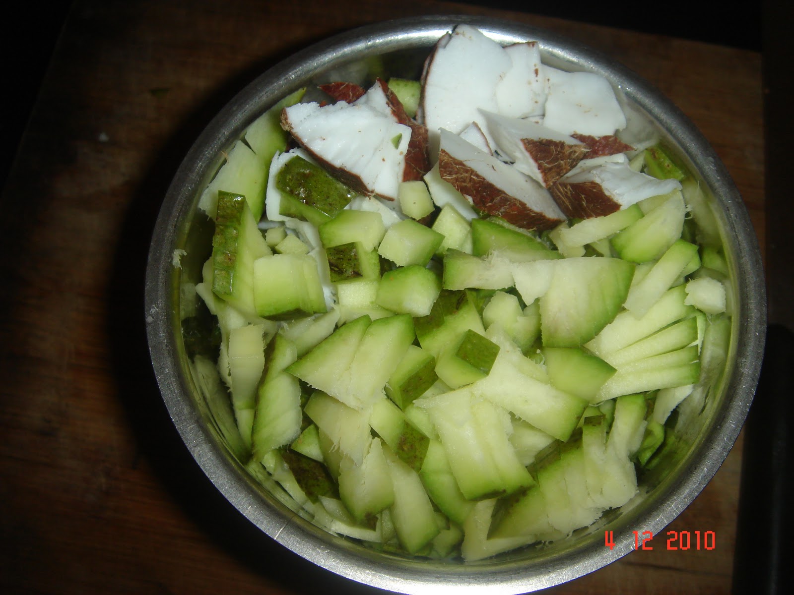 Unlike the chutney, this is thick in consistancy. I keep my chammandi simple by grinding green mango and coconut with green chillis. The sour taste of mangoes along with the creamy texture of the coconuts has a very tingling effect on your taste buds. I know a malayali friend of mine who adds a shallot or two along with a piece of ginger to give the chammandi additional flavours. But nothing to beat the direct hit of sour mangoes —-