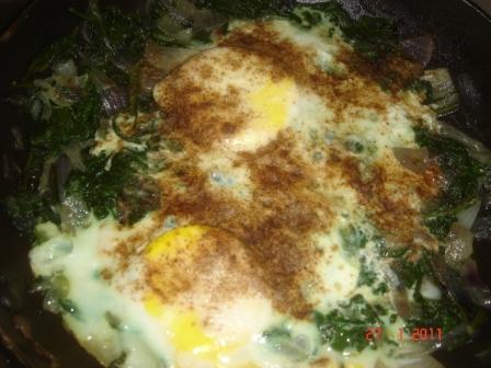 Spinach with eggs looks to be delicious. A fulfilling dish that is healthy as well.