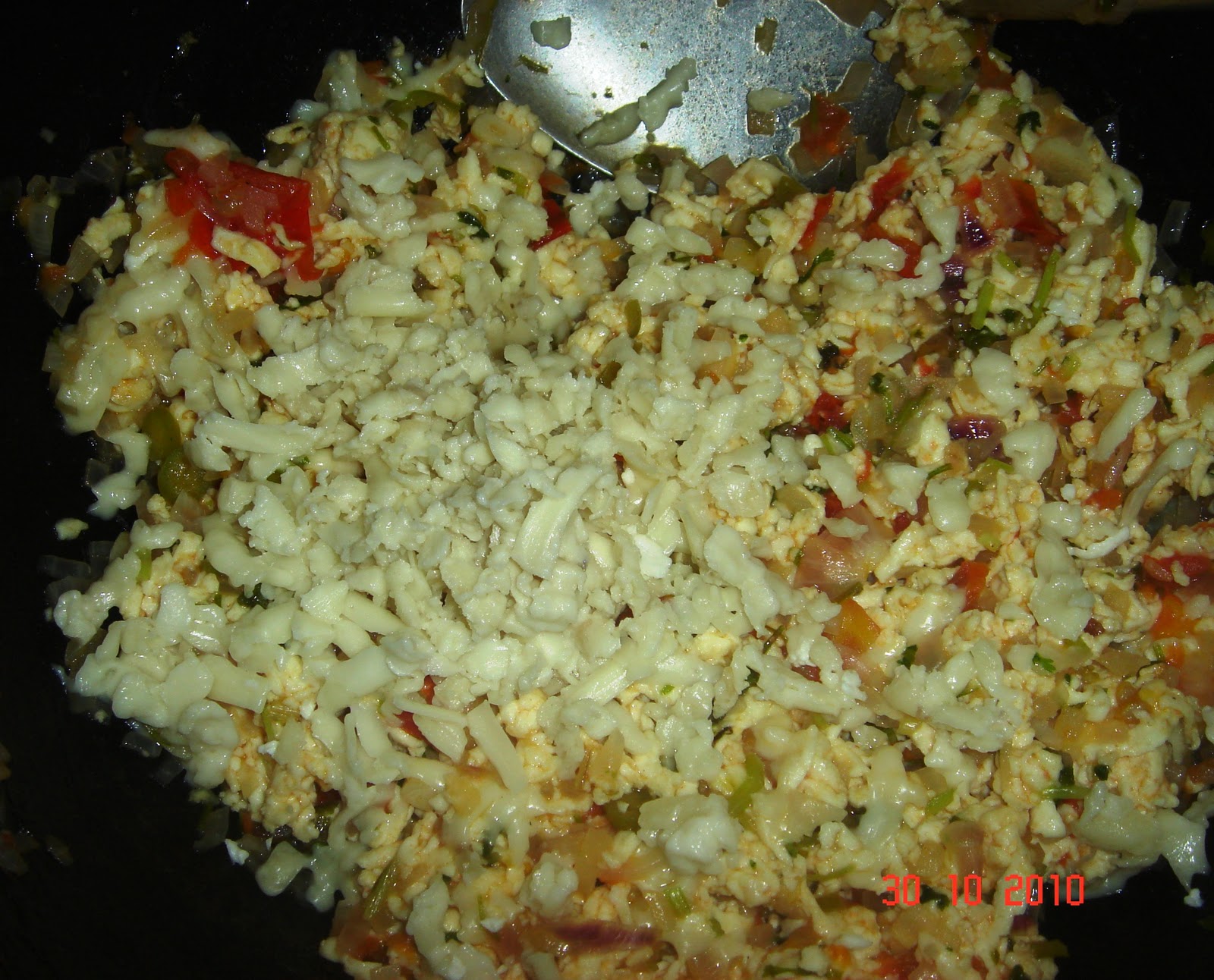 Take off the flame, add the grated cheese and mix well. The filling is ready for use.