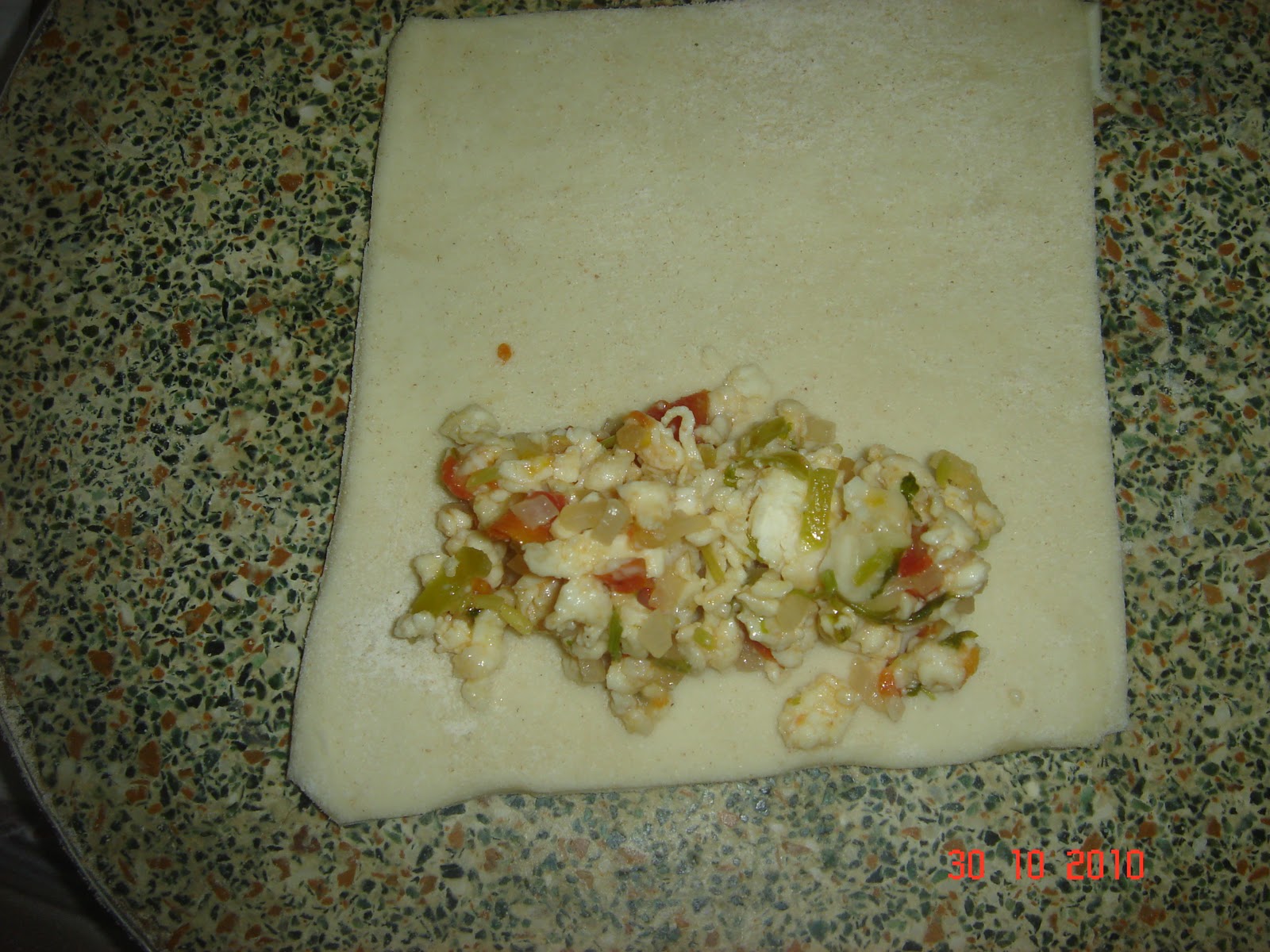 Further cut in to smaller rectangle strips. Take some filling and place it on one side of the rectangle.