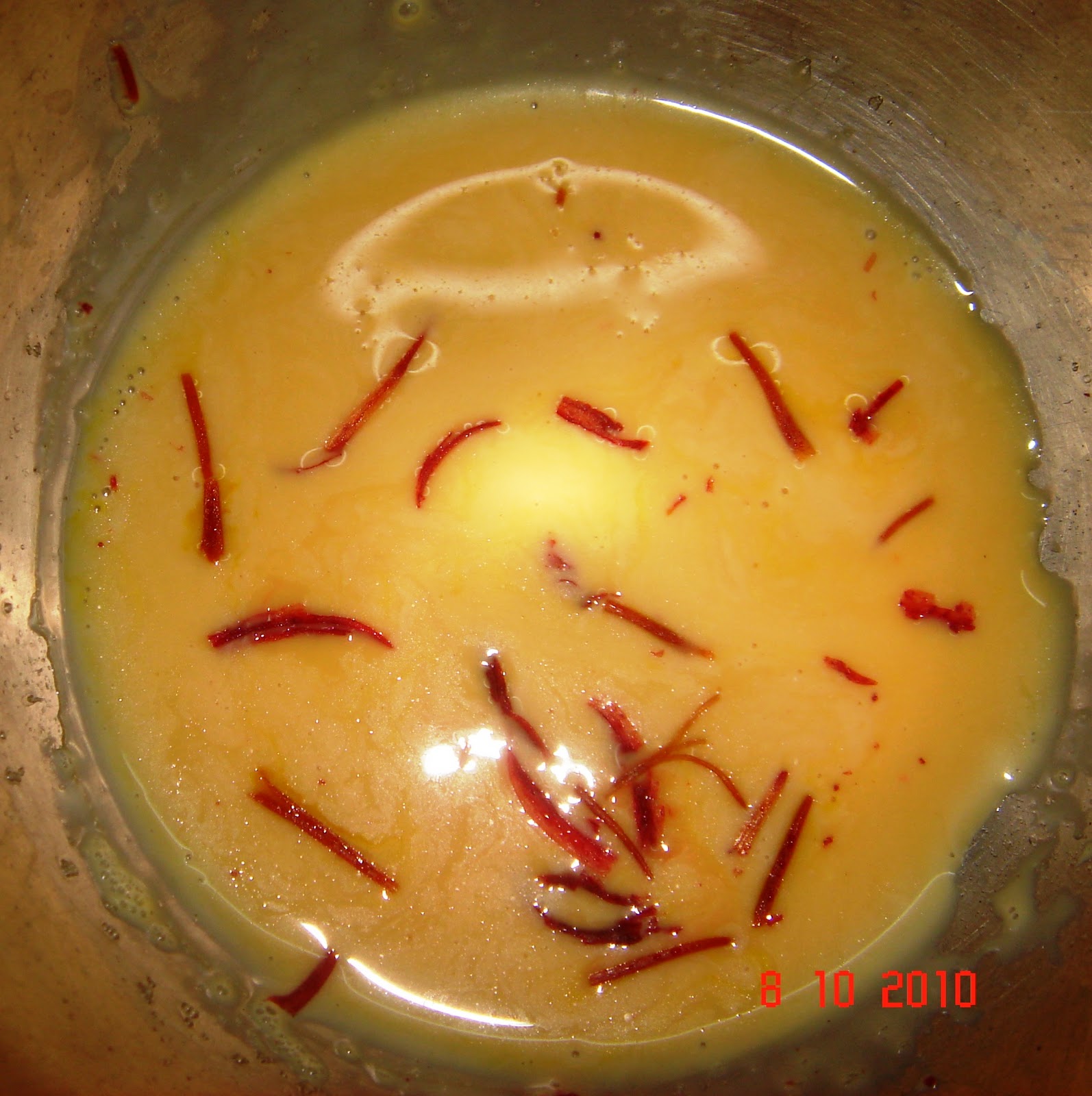 Soak the saffron strands in a little lukewarm milk for some time and grind in to a paste.