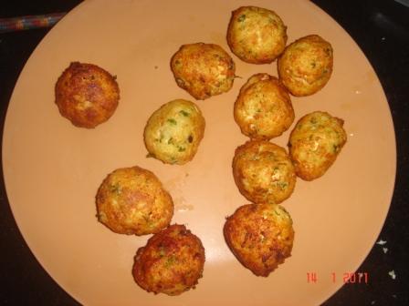 Heat sufficient oil in a kadai and deep fry the balls a few at a time until golden brown. Drain on  to an absorbent paper and keep aside.