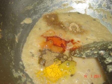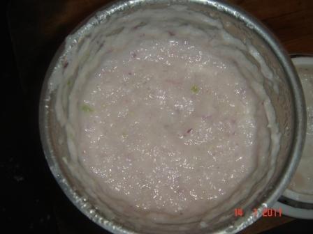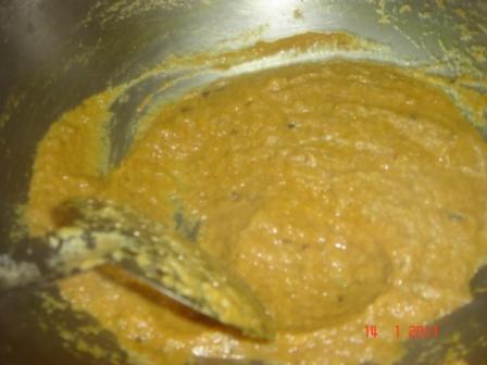 Also puree the onions and green chilli powder and set aside.