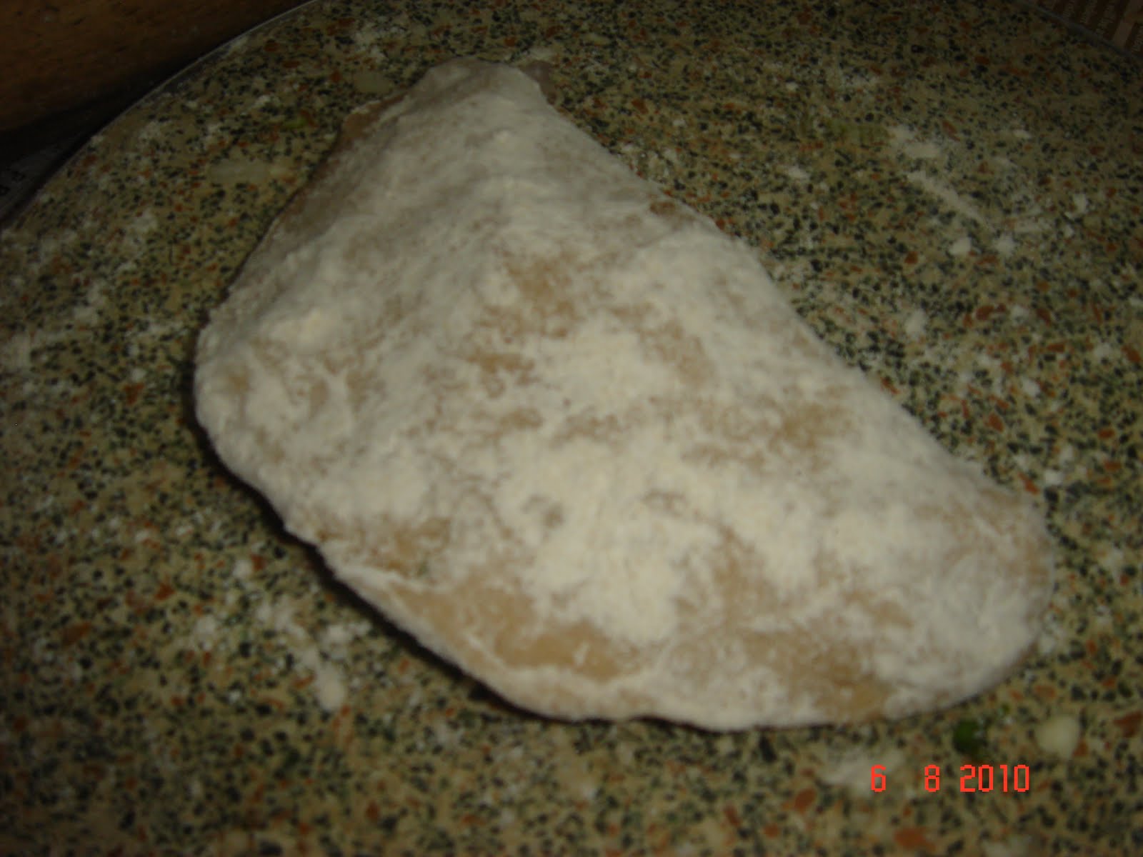 Now take some dough and make it in to a small ball. Now flatten it little and create a hollow space to hold the stuffing. Place the stuffing as shown in the pic