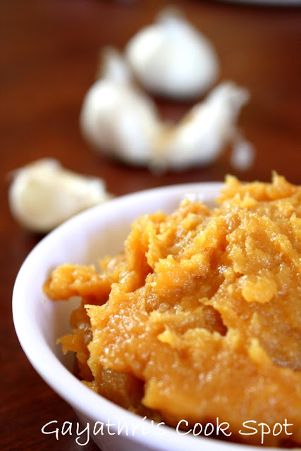 Priya of Bon Appetit is a good friend of mine. When she asked me to do a guest post, I readily agreed. I couldn't select a recipe for the post. I wanted to make a traditional recipe for her. When I visited Coimbatore, mom asked me to prepare this poondu legium for her. I took snaps of the legium to send it to Priya. This is part of postpartum diet. I got this recipe from a nurse. This is also a great medicine for those with gastric problems. One spoon a day is very effective.