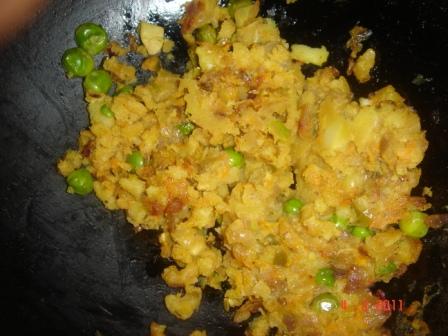Finally add the mashed potatoes along with raisins & cashews. Cook till the flavours blend. Garnish with coriander leaves.