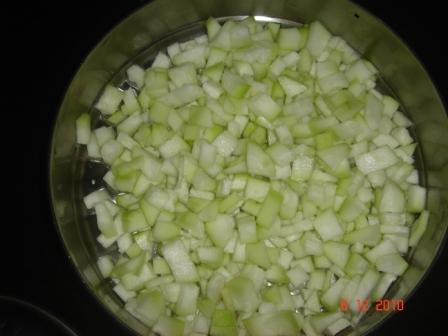 Wash,peel and chop the bottle gourd into small pieces.