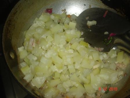 Cook the bottle gourd pieces in a separate pan with little water and set aside.