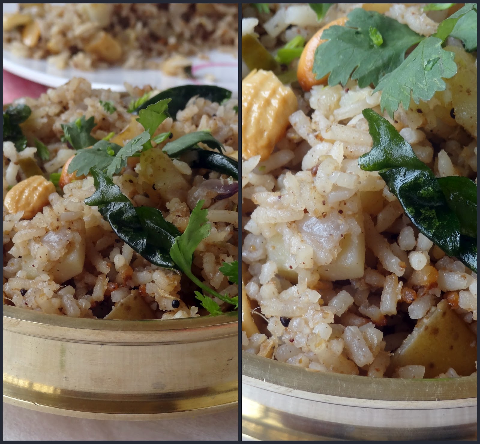 I dished out  Bangala Dumpa Annam (Potato Pilaf from Andhra) & Malli Thokku (Coriander Leaves Chutney) from her book and they were heartily devoured.