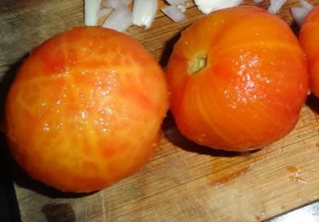 Make the tomato pulp by blanching the whole tomatoes in hot water and then peeling & chopping them (de-seed before chopping if you want, i skipped it ).