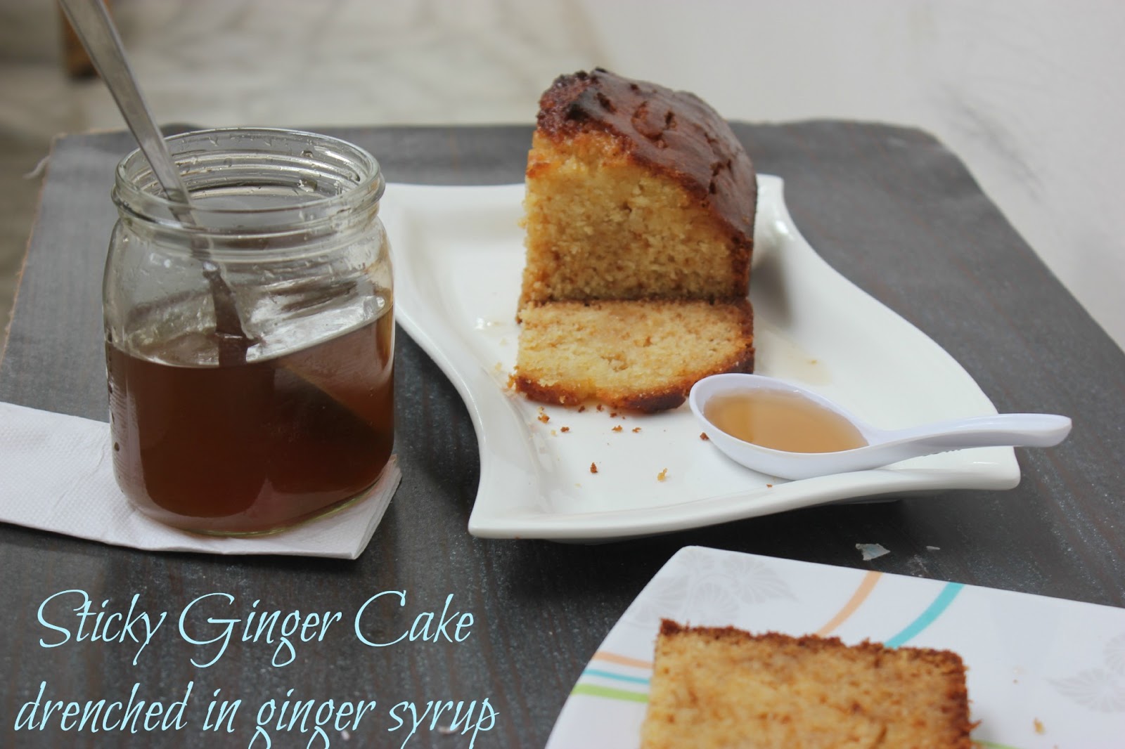 My fridge is never short of ginger and the pantry too has a good stock of dry ginger powder/dry ginger. So for the AGC this month I decided on baking a ginger cake that I have been meaning to bake for quite some time but had not gotten around to. This sticky loaf has ginger written all over it. But it is not overpowering. The ginger in the loaf is a revelation and the ginger syrup that we so unabashedly topped it for every slice was sensational. The bake was devoured with a vengence. If the cake tastes as good as this sticky ginger loaf then the weighing scales be damned :P