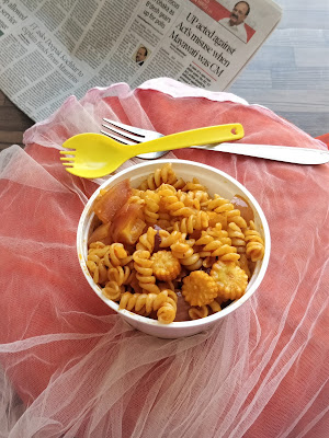 The corkscrew shaped pasta has been dressed with store bought sauce tossed with some available fresh veggies from the fridge and nothing more; the recipe like i said is not rocket science but yes cooked with love and adoration it was scrumptious to say the least.