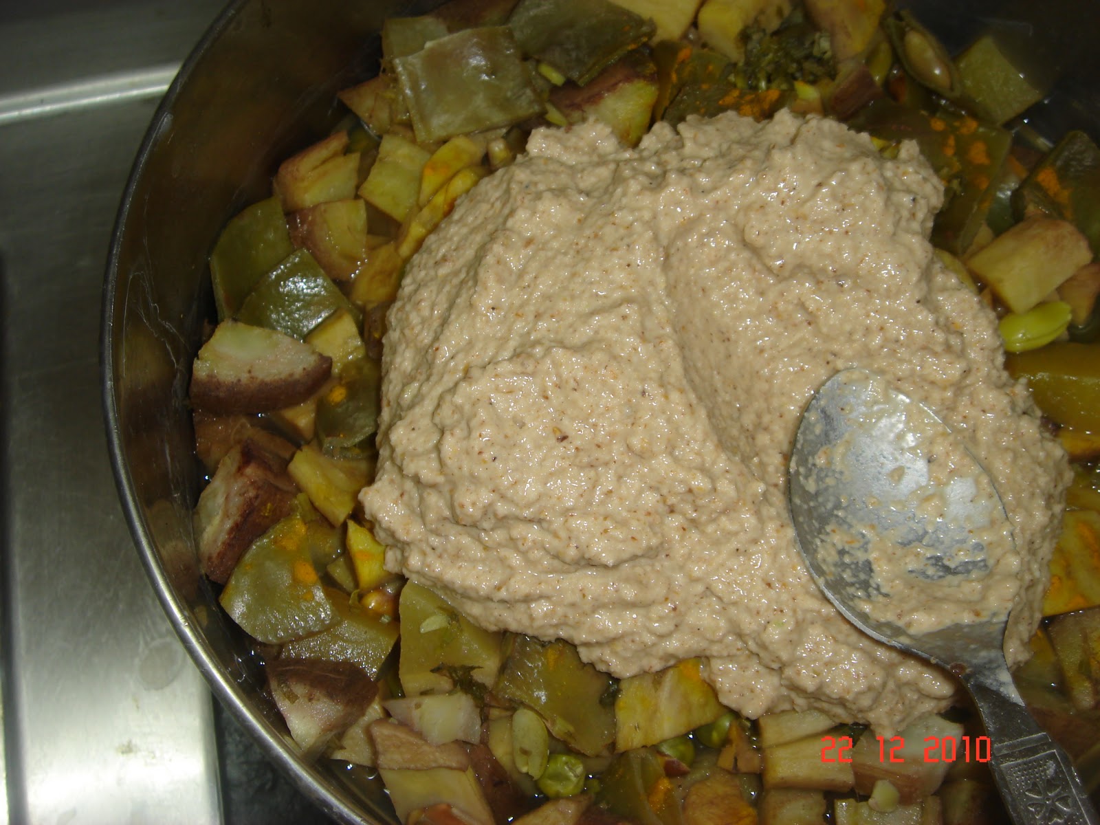 Now mix the cooked roots/vegetables along with the spicy paste. add salt and bring it to a boil.