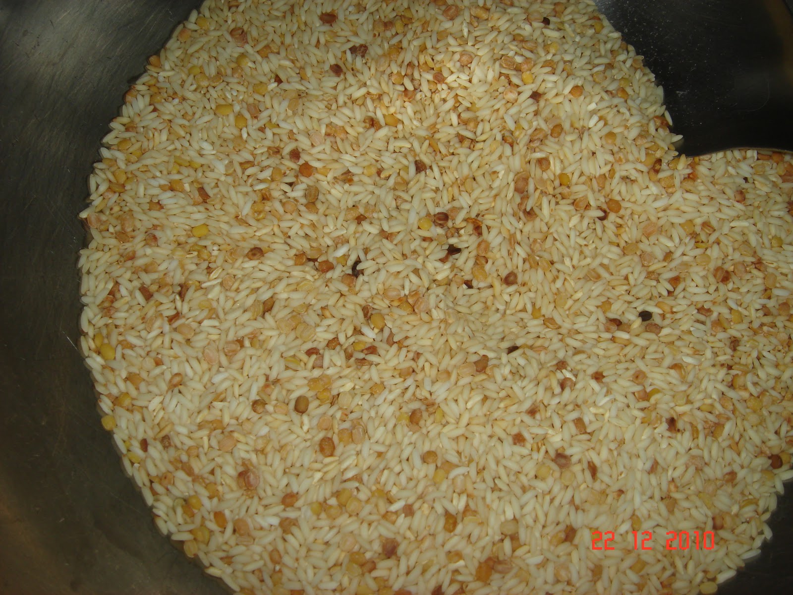 Dry Roast the rice and dal till it turns golden brown with a very divine aroma. Let it cool. Then grind it coarselt to gets a Rava/sooji Texture.