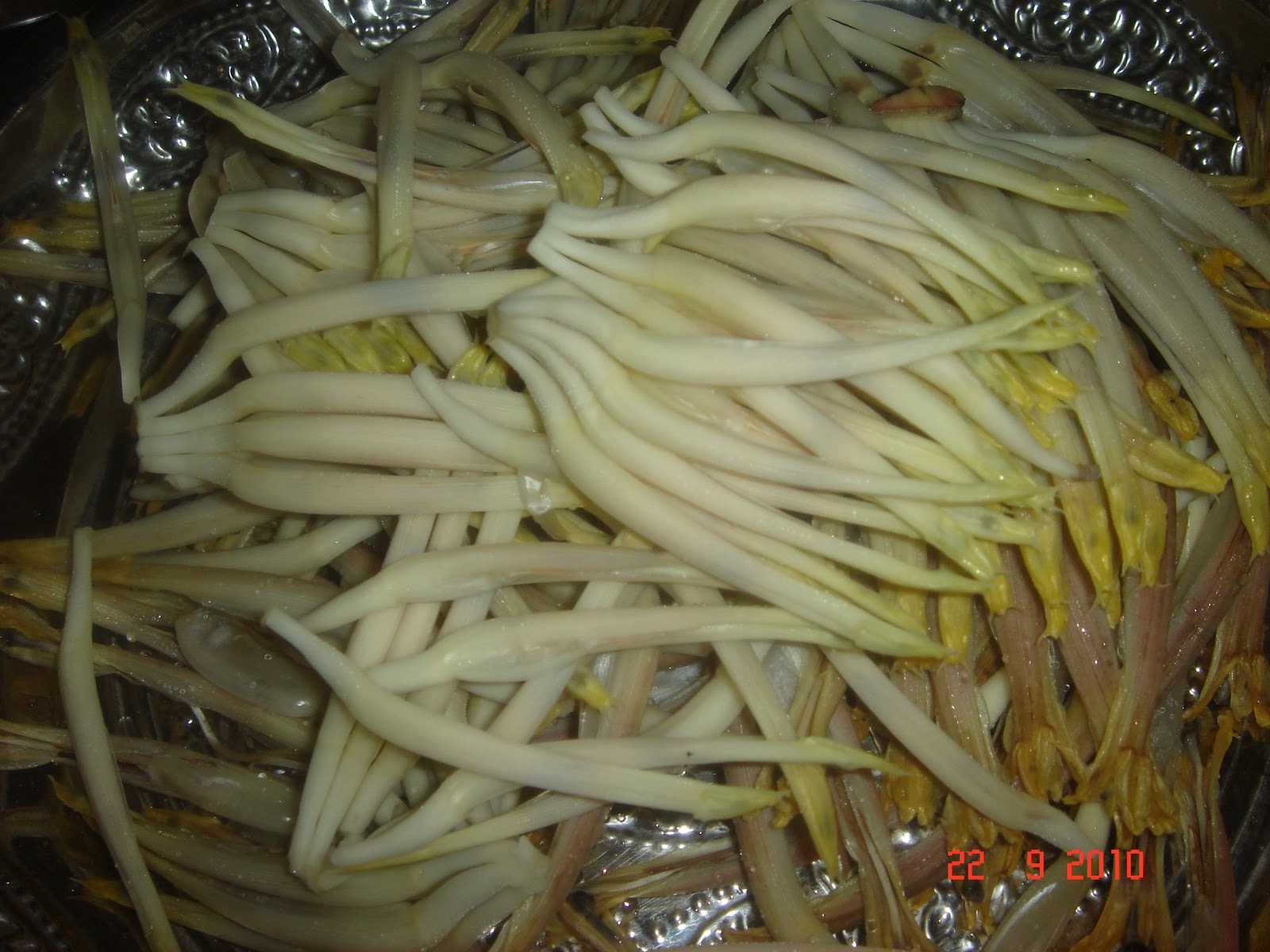 First of all flowers have to be removed from the various layers of its red skin and care has to be taken to remove the Stamen (kalan) from every flower. This is the most tiring part of the whole procedure. I generally cut the vegetables and soak it overnight in water and some buttermilk to help retain the colour