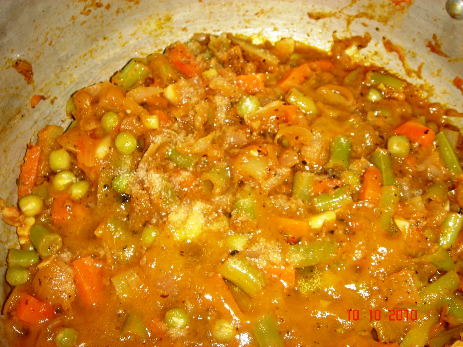 The strained veggies from the  Vegetable Stock were put to a good use  here.  They were ground to a fine paste and used along with the Vegetable Stock.